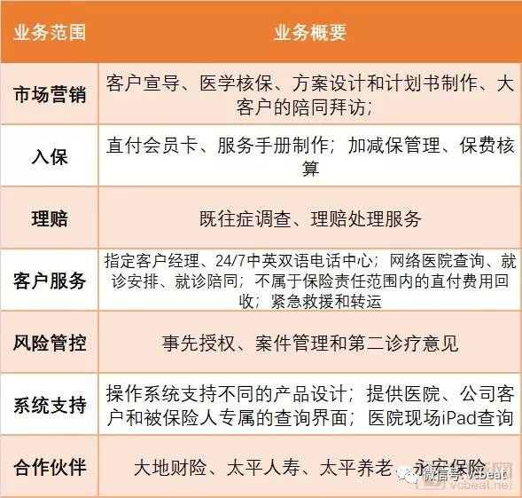 万欣和的业务模式是医疗保险TPA的一个典型案例,其专注于医疗服务网络的构建,这对于有高端医疗服务需求的客户来说是一项很有吸引力的增值服务,甚至可以作为医疗保险的“卖点”进行营销。