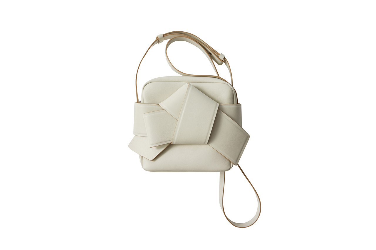 在 Acne Studios 的 2019 春夏包袋系列中,其经典的 Musubi 和 Baker 包袋系列在承袭极简风格的同时,也换上了春夏新颜。Musubi 包袋以绳结为灵感,颇具抽象雕塑感的皮革缠绕在一起,与廓形利落的包袋形成独特对比;同时,品牌还在此基础上特别设计了一款以日本 obi sash 传统服饰为灵感的 Musubi 包袋,色彩鲜艳的色皮革和点缀其上的蝴蝶结装饰衬托出趣味春日。