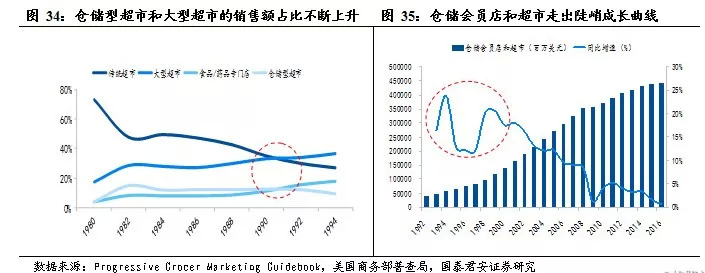 从人均GDP水平上看,2016年中国的发展水平与70年代末80年代初的美国相似,而80年代初正好是美国两大会员制商超山姆会员店和Costco早期创立的时间点。