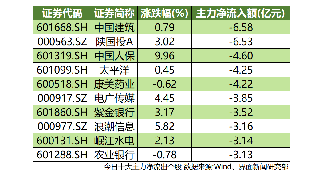 中国人保(601319.SH)股价一路走强,今日遭主力资金涨停板上疯狂套现,净流出额为4.60亿元。