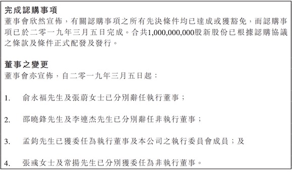 此次公告中宣布的最新董事局人事任命:自2019年3月5日起,俞永福及张蔚已分别辞任执行董事,邵晓峰和李连杰已分别辞任非执行董事;同时,阿里影业首席财务官孟钧已获委任为执行董事,阿里巴巴集团财务副总裁张彧及阿里巴巴集团人力资源副总裁常扬已获委任为非执行董事。