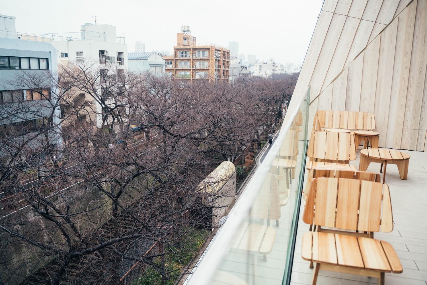 建筑结构上,这家门店以杉木和落地窗打通室内与室外的空间,由于店铺正好建在河川之上,消费者坐在室内便能看到窗外栽满樱木的目黑川河道。