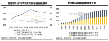 人口周期转变,人口迁移形势随之变化。一方面,流动人口规模在2014年前后趋势性下滑,这与流动人口主要构成——农民工年龄结构显著上升关系较大,我们观察到农民工有回流三四线城市迹象,这也是这一轮三四线房地产市场及消费市场大爆发的重要背景之一。另一方面,90后中超7000万人受过高等教育,80后中3500万高等院校毕业生,未来将有2.5亿人受过高等教育,而这部分高质量人口的迁移选择将深刻改变中国城市格局。