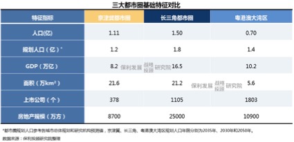 京津冀、长三角和粤港澳三大都市圈是中国经济发展的核心引擎。这里以占全国5%的土地、24%的人口,创造了43%的GDP总量,并培育出超过3000家上市企业,为房地产市场贡献了26%的成交规模。三大都市圈虽各具特色,但都有极大的发展空间和潜力,无疑仍将成为未来高素质人口的首选流入之地。