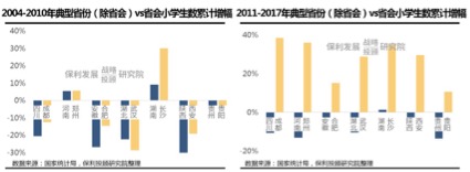 中西部核心城市人口聚力显著拔升是重要例证。对比中西部典型省份省会与省内其他城市小学生人数增幅,发现:2010年以前,省会对省内人口吸引力并不显著,具体表现为小学生人数增减是同向变化的;2010年以后,省会城市人口吸引力明显提升,如成都小学生规模累计增幅近四成,而同期四川其他城市小学生规模仍处于负增长区间。