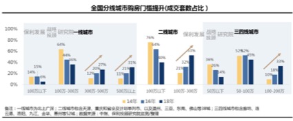 本轮房价涨幅超以往任何周期,从分线城市成交总价占比来看,一线城市总价段300万以上成交占比明显提升;二线城市100-300万总价段产品成主流;三四线总价段100万以上产品占比提升20多个百分点。