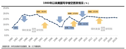 观察成熟的美国存量经营市场,存在着明显的周期波动规律。美国写字楼市场运行周期波峰明显,与经济周期高度相关,遭遇波谷阶段的1998年、2008年恰逢经济危机时点,且对房地产交易市场,经营市场运行周期相对较长。