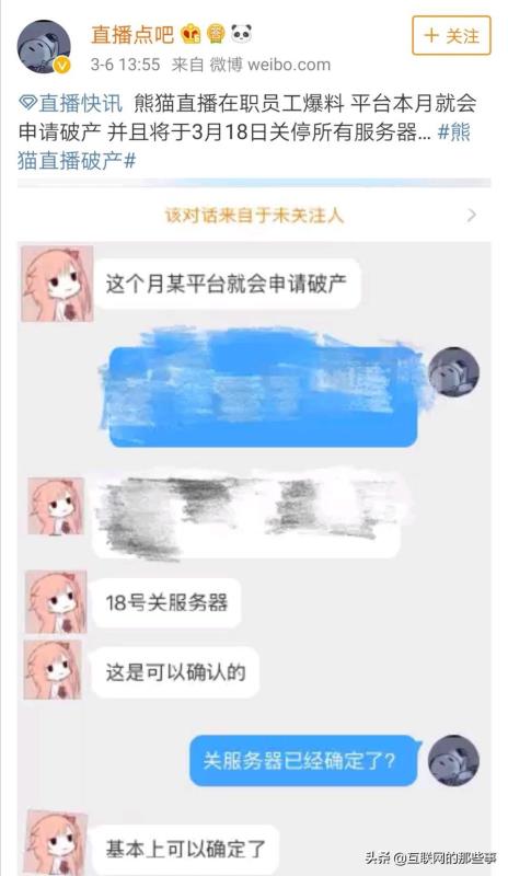网传的一张截图显示,熊猫直播COO张菊元的助理在熊猫直播的员工群“潘达踢威”中表示,已经帮员工安排了多家公司的用人需求。还有传言称,本月18日熊猫直播就将关闭服务器,其大股东王思聪早已清空手中的股票。