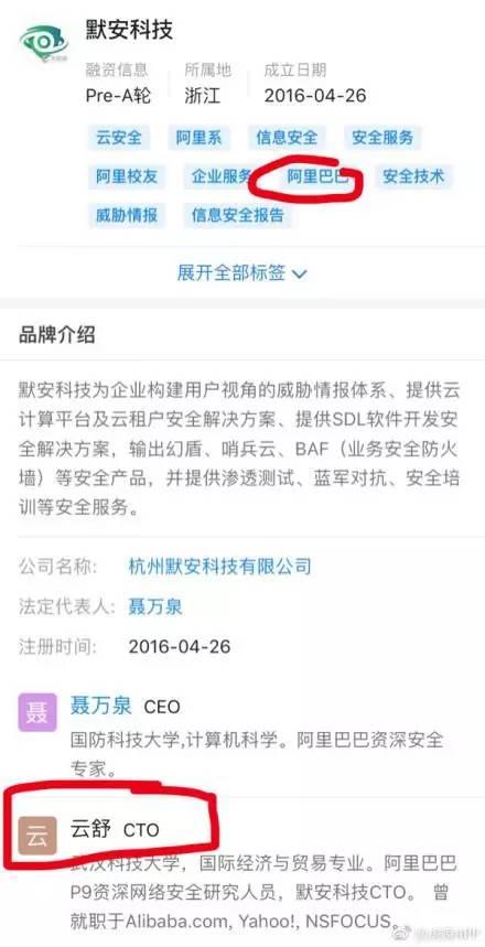 2016年,已经离开阿里的云舒与前阿里云平台总监聂万泉、前阿里巴巴高级安全专家汪利辉共同创业,成立了杭州默安科技有限公司(以下简称“默安科技”)。