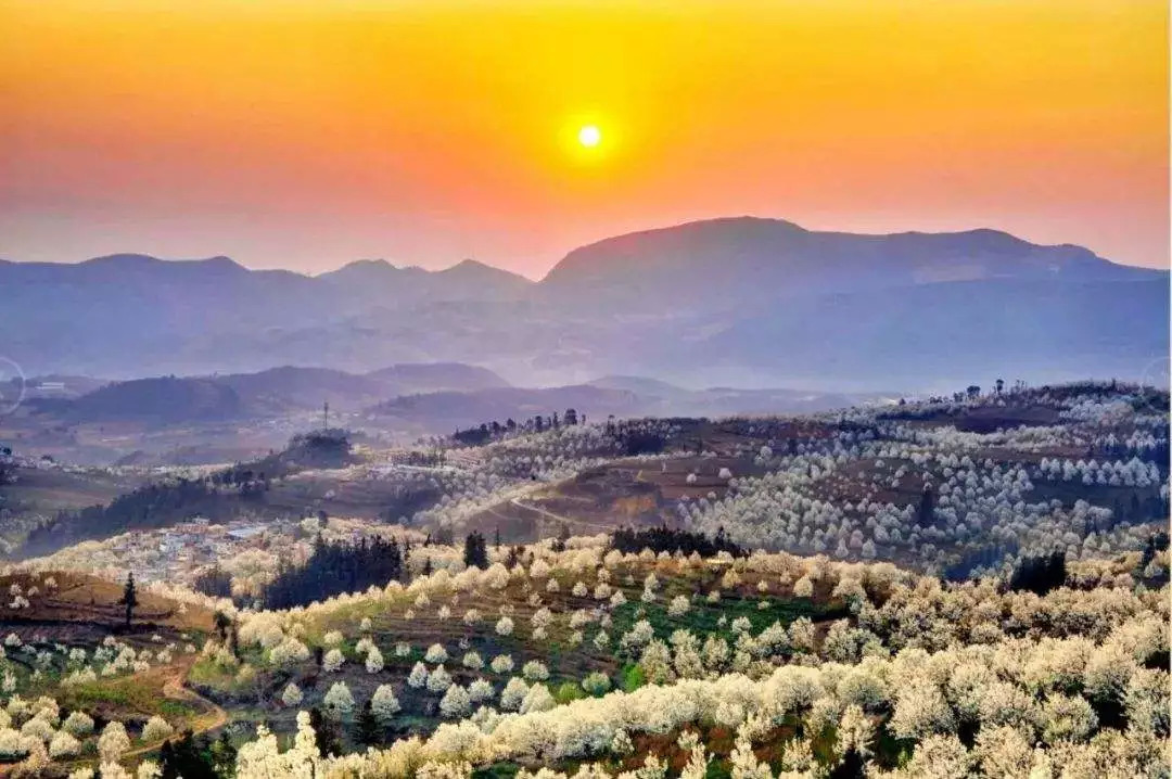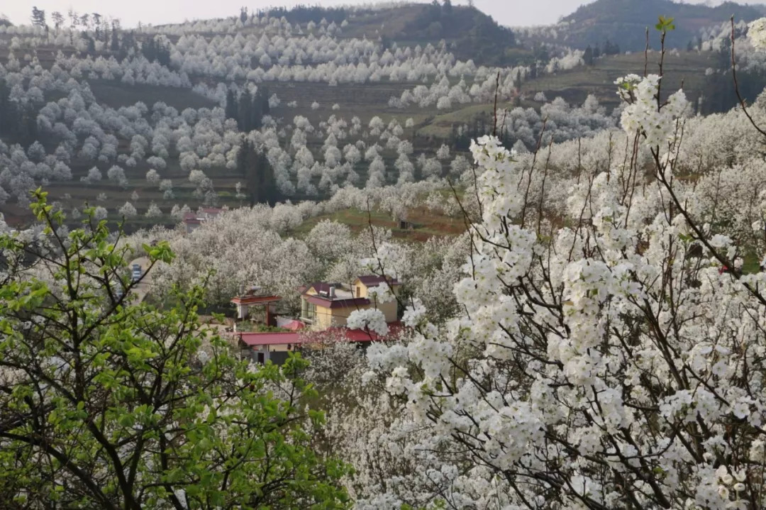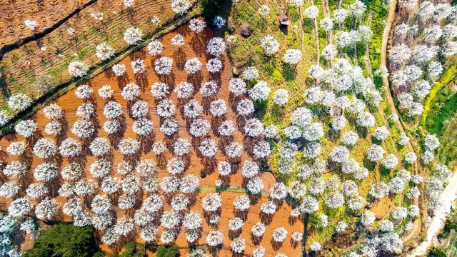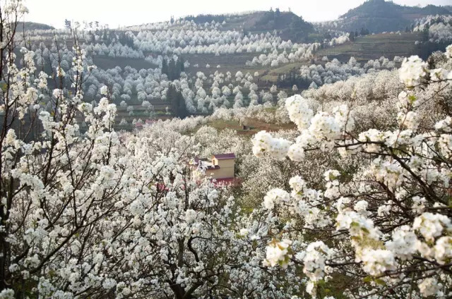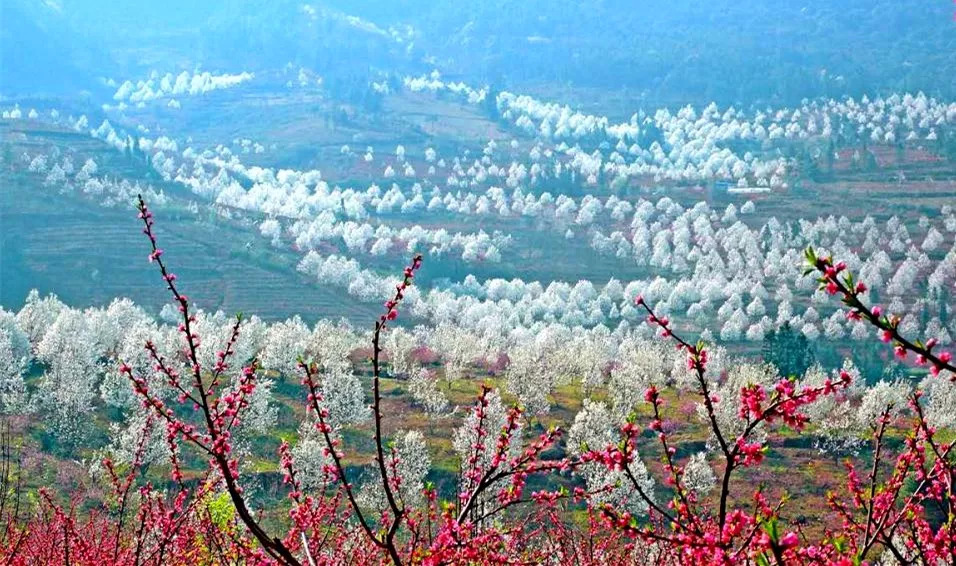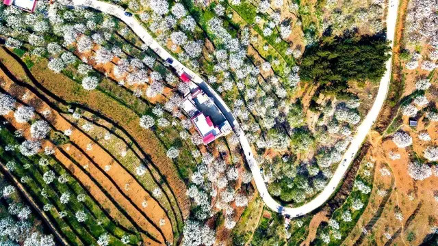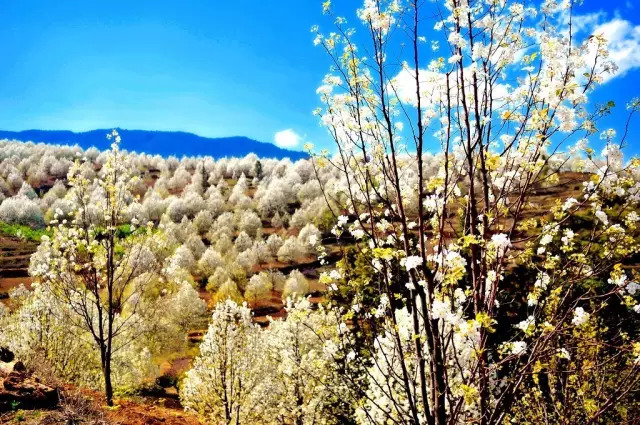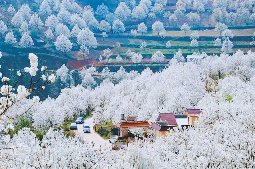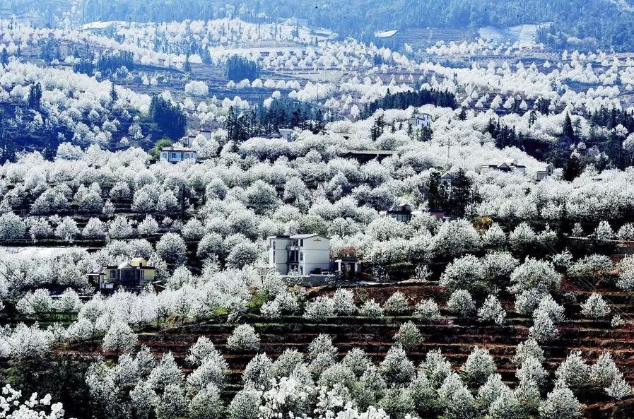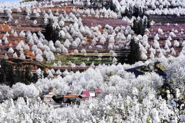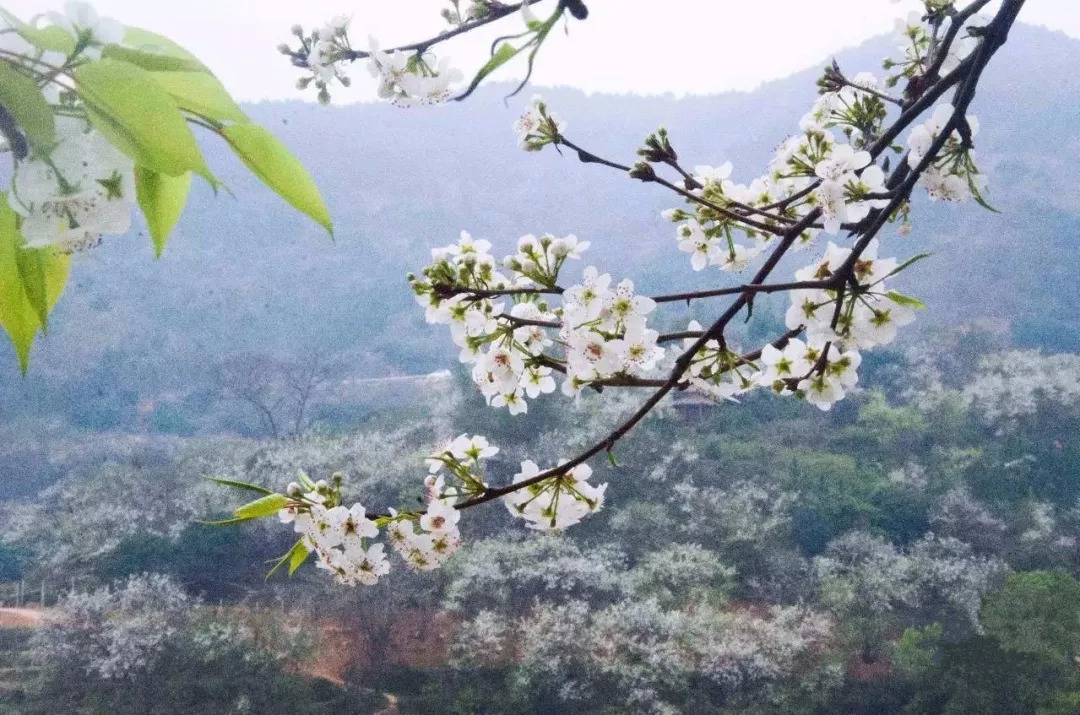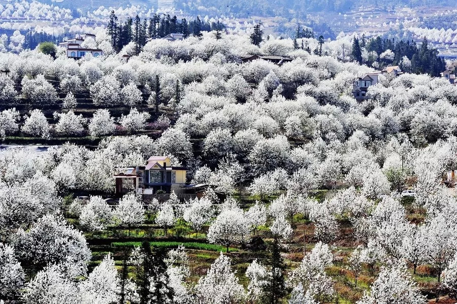 万亩梨花春光乍泄,似雪堆云涌,银波琼浪,向赏花者展现着“中国最美的春天”。