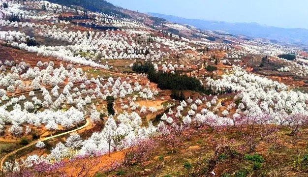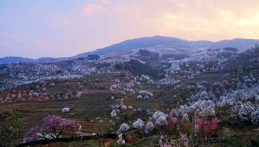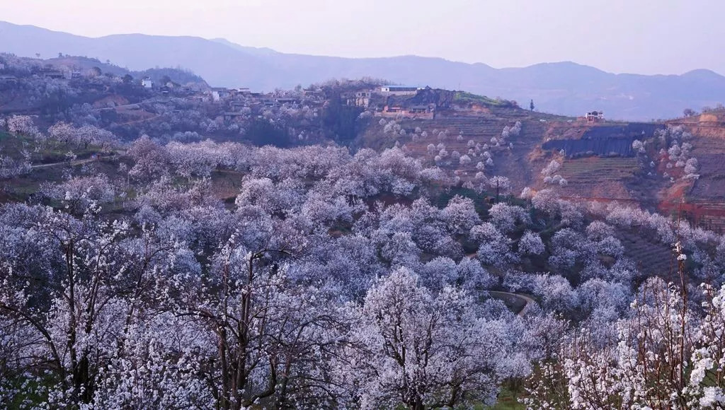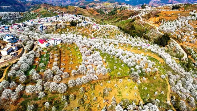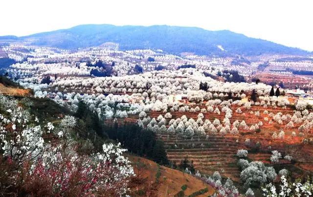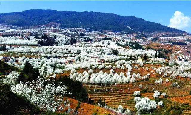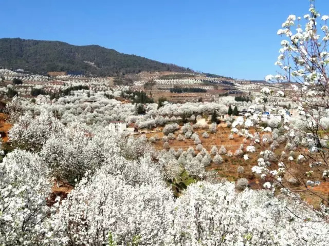 那盈盈的花朵合着霏霏烟雾,沿着起伏的山脉,在春光里流动,绵延。锦簇的花团绵延起伏,似雪似雾,加级寨子山,成了花的山,花的海。畅游在梨花的世界里,如临仙境般飘逸。加级寨是云南规模最大、中国最美的梨花村。