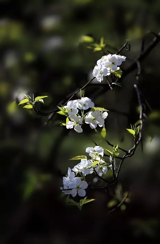 阳春三月,是千树万树梨花开的季节,梨花,洁白似雪,娇羞而美丽。远远望去,那一株株梨树,像是从地下冒出来的一股股喷泉。而雪白的梨花,就像是源源不断的浪花,在阳光的映照下,在春风的吹拂下,跳跃着、舞动着,洁白如雪,银光闪闪。穿梭其间,微风拂来,花枝随风而动。风儿掠起一片片梨花,飘飘撒撒。云南的三月,梨花盛开,枝摇花颤。