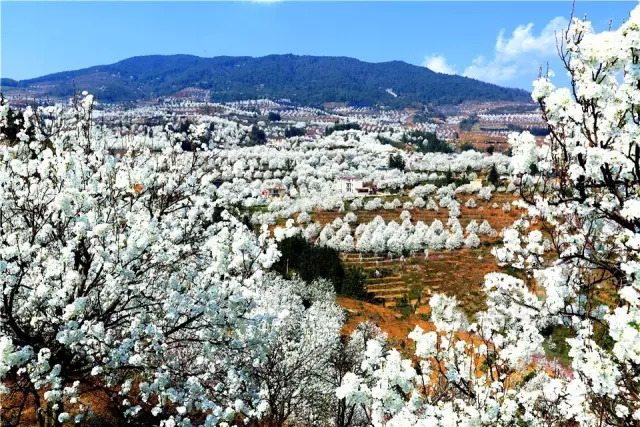 早春三月,一场春雨如期而至,催开了个旧市加级寨的梨花,白花花的梨花仿佛在一夜间绽放满整个山野,呈现出“忽如一夜春风来,千树万树梨花开”迷人景象,梨花、村庄、游人形成了一道亮丽的风景线。
