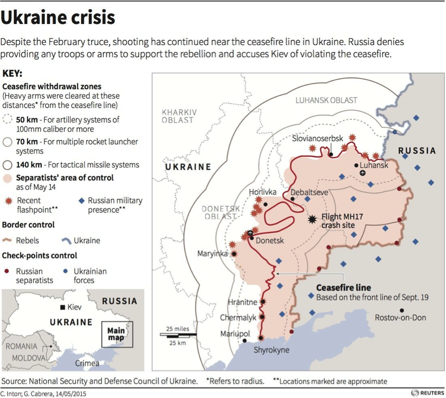 将持续动乱的省份“联邦化”,成为自治共和国成员,是乌克兰东部目前最具争议性的话题。基辅方面主张,这是卢甘斯克和顿涅茨克的叛乱者从大乌克兰获得解脱的方式,而暴乱者则倾向于认为,这不仅有碍于实现彻底的独立,还会使这两个地区无法与俄罗斯合并。