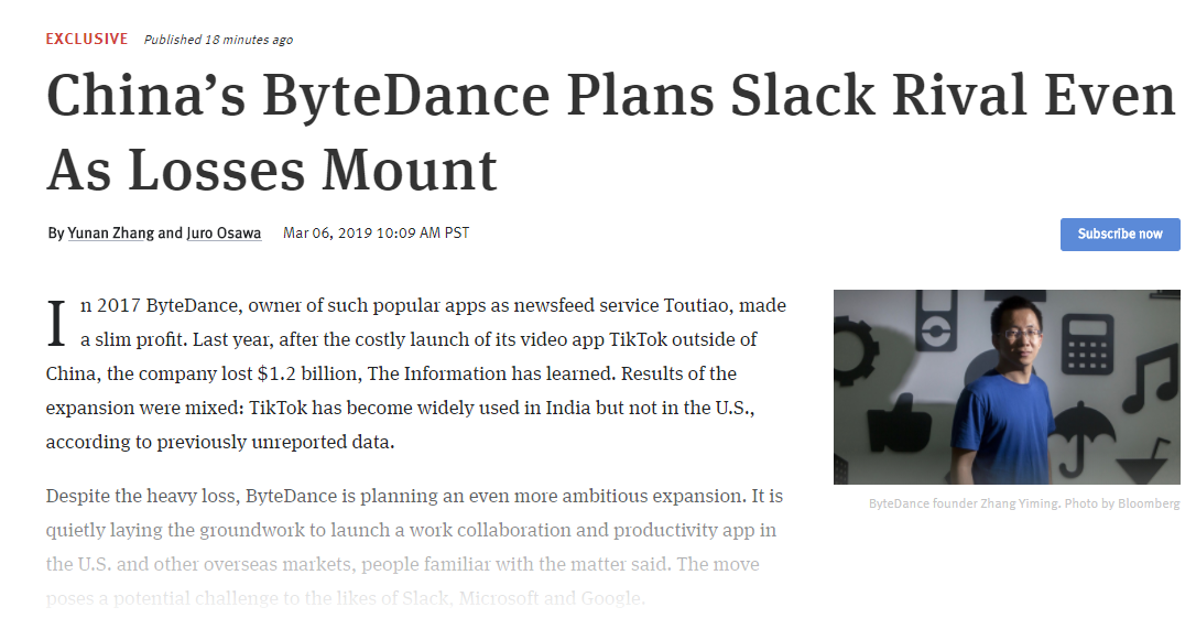 字节跳动去年亏损12亿美元。