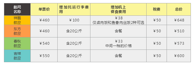 一目了然,取消飞机餐并没有让机票变得和我们想象的那样便宜。当然如果你只是出个短差,轻装上阵又能扛饿,那当然是怎么便宜怎么来了。