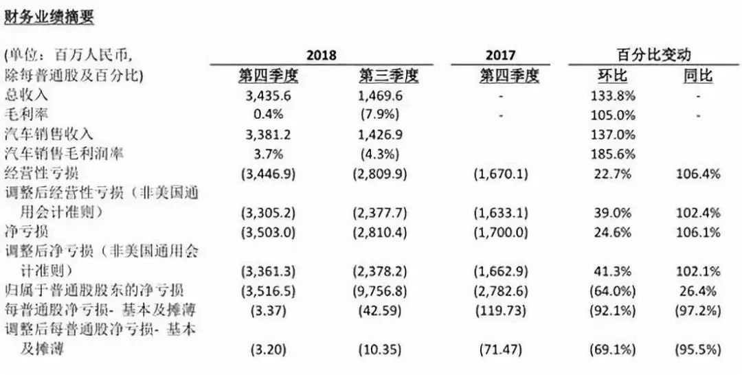 财报显示,蔚来汽车2018年营收49.51亿元,净亏损却达到96.39亿元,可谓“烧钱机器”。其中,去年第四季度营收为34.36亿元,占去年总营收的七成。此外,蔚来还宣布终止了上海建厂的计划。