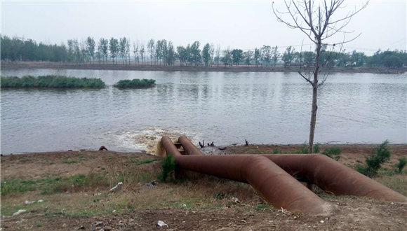 在“酸水坑”和水沟之间实际上还连接着一个阀门,而此时,当水泵带动“酸水坑”里的水翻越大堤,向中亭河喷泻而出的时候,这个阀门是打开的。