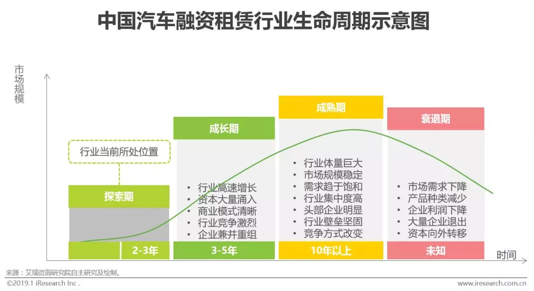 在宏观经济调结构、去杠杆的背景下,汽车融资租赁行业的发展速度难免受到影响。因此本研究推测,未来至少两年内行业仍将处于初级探索阶段,行业爆发性增长仍需时日。