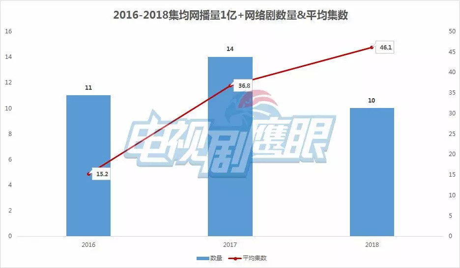 数据来源:鹰眼数据系统,爱奇艺/腾讯视频/优酷/芒果TV/搜狐视频/乐视,集均网播量1亿+网络剧,数量&平均集数