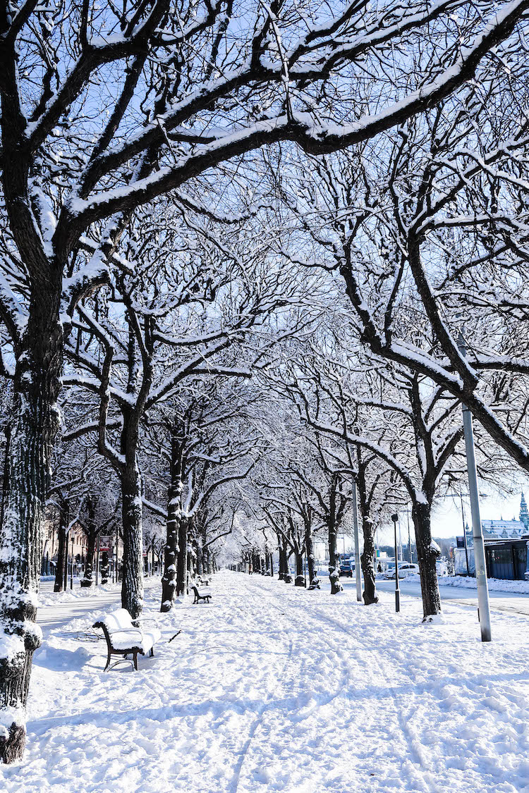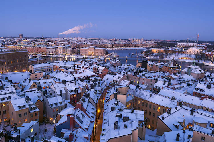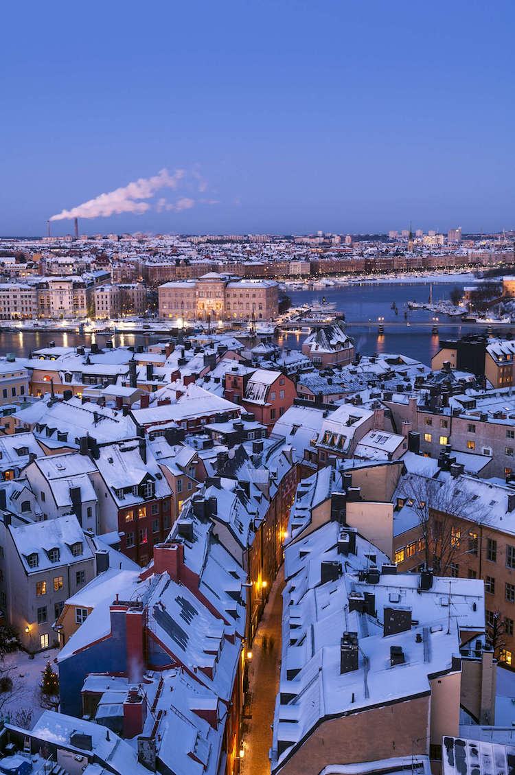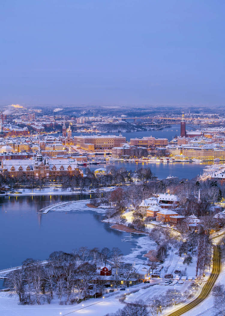 我们的飞机追着夕阳跑了不知多少小时,在下午四点多降落在斯德哥尔摩阿兰达机场,但窗外已经是浓稠的墨蓝色。俯瞰下去,被一片雪白覆盖的城市朦胧静谧,人字形屋顶和彩色外墙装饰的建筑疏疏落落,所有窗户都透出暖黄色的光,星星点点氤氲成一片,不远处有一辆火车,安静地从画面中间驶过。这是七千公里另一头喧嚣庞大、灯火通明的城市无法拥有的景致,也是斯德哥尔摩给我的初印象 —— 一个童话。