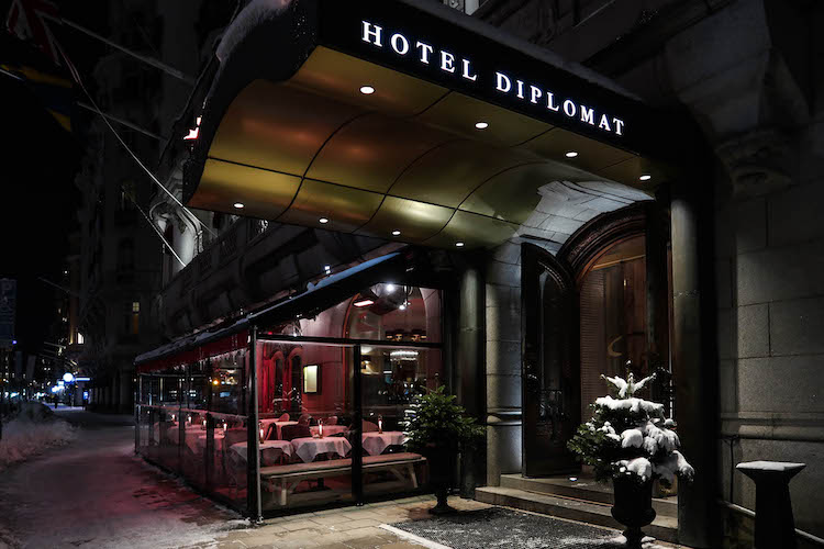 但身处漫长黑夜之中的斯德哥尔摩人更渴望延长光照时间,所以这里的餐厅、咖啡厅许多都会在店铺外面加盖一间通体透明的玻璃“阳光房”,日落之后点上蜡烛,在老城区中世纪建筑群映衬之下愈发显得古典浪漫。位于老城区市中心的 HOTEL DEPLOMAT 艺术酒店也属此列,但它给人的惊喜远不止于此。