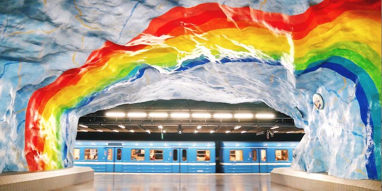 斯德哥尔摩的地铁号称是世界上最长的艺术博物馆,这个全长为108公里的地铁网络包涵一百多个地铁站,而每个站台的墙壁和大厅则像是天然开凿的“洞穴”,遍布艺术家的墙绘作品。