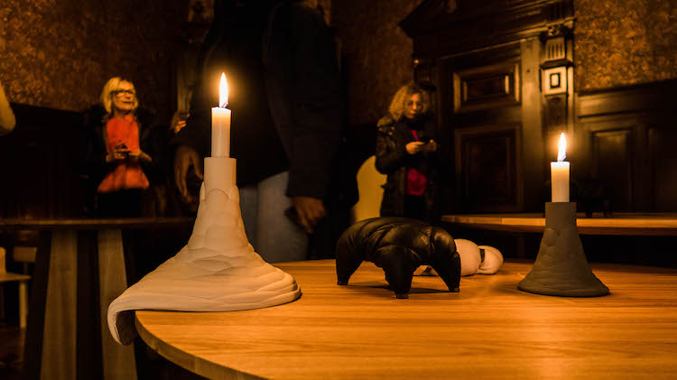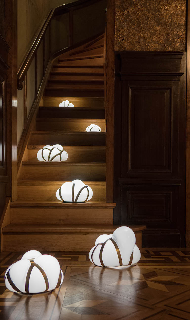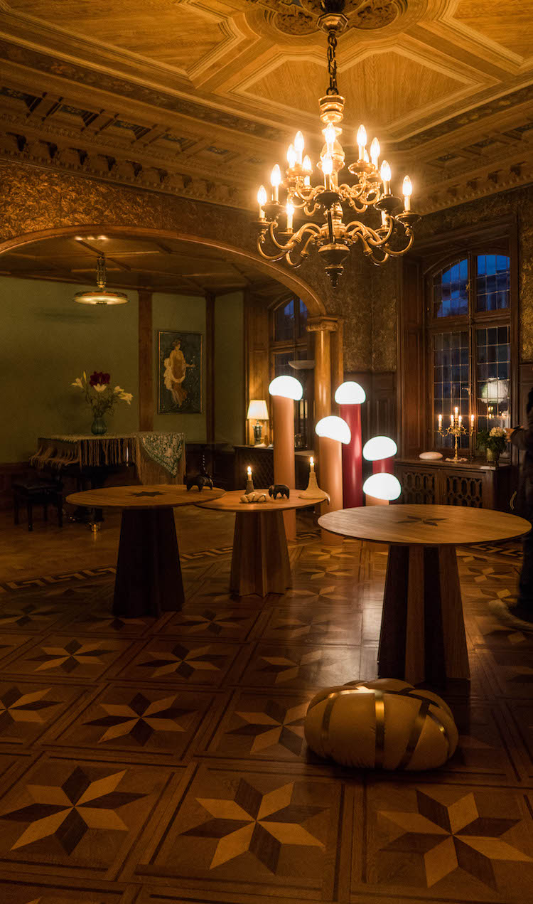 两位设计师将新近完成的作品布置在不同房间中,难得的是,时间跨度带来的壁垒在这里自然消弭,造型柔软的皮革椅子、“流动”的烛台和云彩一样的地灯都像是原本就属于这间老宅的物件,丝毫不觉违和。