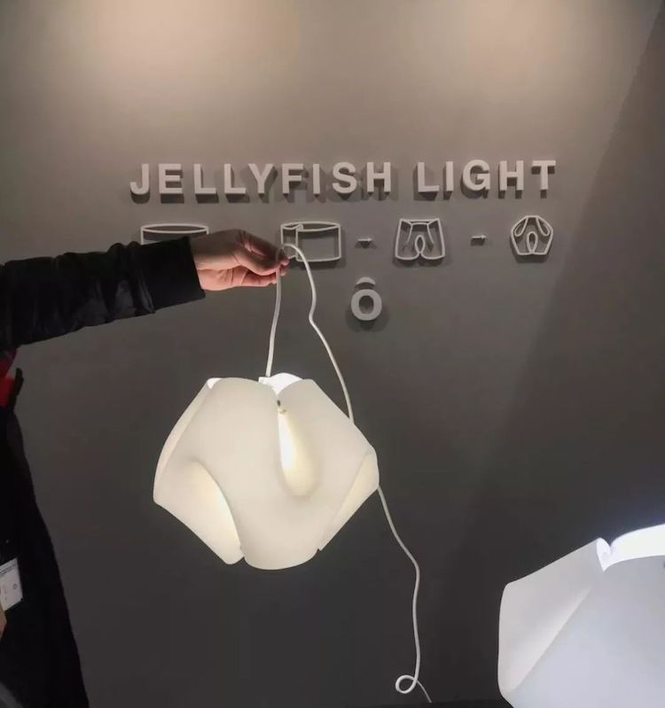 相比米兰家具展、巴黎家饰展等大型展览,斯德哥尔摩家具与照明展的体量又刚刚好大半天就可以逛完,三个展厅的品牌集中了北欧五国的精选作品,针对新人设计师的 “Green House”更加轻松有趣、充满惊喜,比如下面这个用按扣就可以组装完成的水母灯(来自日本设计工作室 eau)就是今年Greenhouse人气很旺的一款作品。