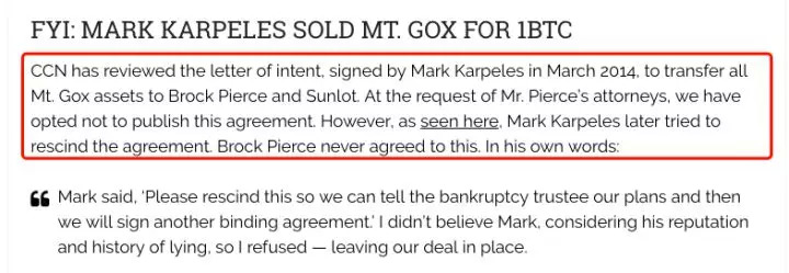 即使法胖极力否认,而据外媒报道,这笔交易确实存在。根据 CCN 的审查,他确实在 2014 年 3 月签署了意向书,将交易所的资产转让给了 亿万富翁 Brock Pierce 和 Sunlot。之后法胖反悔并想要废除协议,被 Brock Pierce 拒绝。