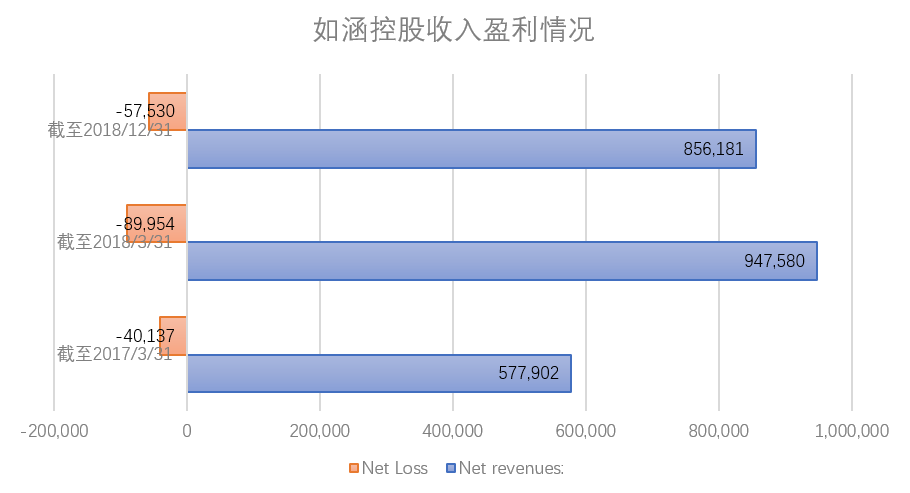 招股书中提到,如涵在2017财年、2018财年和2019财年前三季度,分别实现收入5.77亿元、9.47亿元和8.56亿元人民币。当季分别亏损4013万元、8995万元以及5750万元。