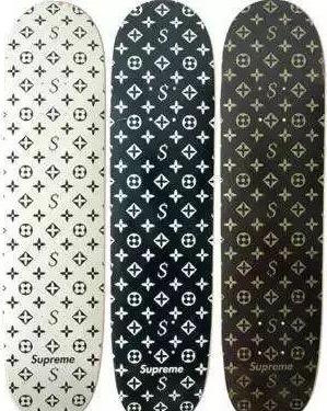 2017年LV与Supreme联名系列销售额突破了一亿欧元,同时也助推Supreme估值突破10亿美元大关。但谁还会记得2000年的Supreme发生了著名的LV事件。当时Supreme发布了一系列产品,将带有“S”字样的Logo融入到LV的标志性印花中,并相继推出了滑板、帽子、T恤等产品。而这一系列作品的推出让很多人都表示吃惊,各路出瓜群众还以为是Supreme和LV推出了联名款,但最终出面否认,并勒令Supreme停售下架产品,同时还要召回并销毁已出售的产品。