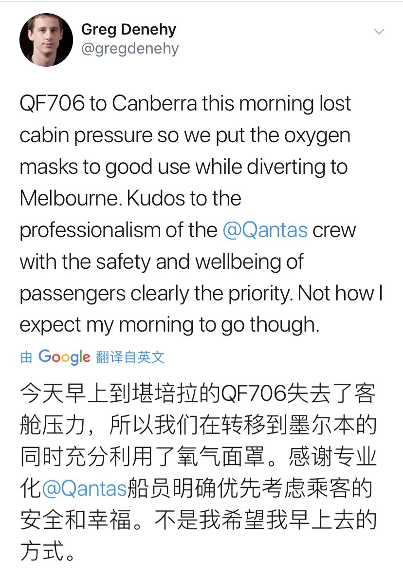 “我们的飞行员和机组人员按照标准操作程序处理了这一事件”,澳航在一份声明中说,“我们要感谢那些遵循机组指示,并在转移过程中保持冷静的乘客”。