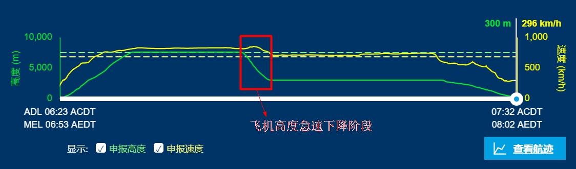 通过FlightAware查询飞行记录,当时飞机在5分钟内从7620米的高度迅速下降到3000米左右,落差4600米。