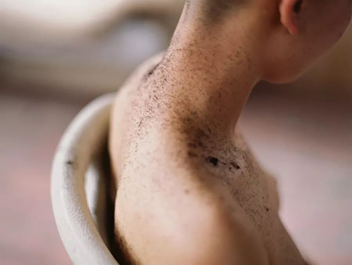 也因此,罗洋作品中,女孩们皮肤上的伤痕,眼神所透露出来的沧桑,具有了一种别样的美感和诱惑。身体上的伤痕是一种视觉上的诱惑,它让人陷入恐惧和同情,陷入别人的经历和故事,而最终其实更多看到的是自己内心的伤痕。但她的女孩们也有阳光、美丽、活力四射的一面,即便眼神迷离游移,但肢体上的倔强表明,她们有自己的经历,有自己的伤痕,但也有坚硬的内核,而且是不轻易拿出来示人的。