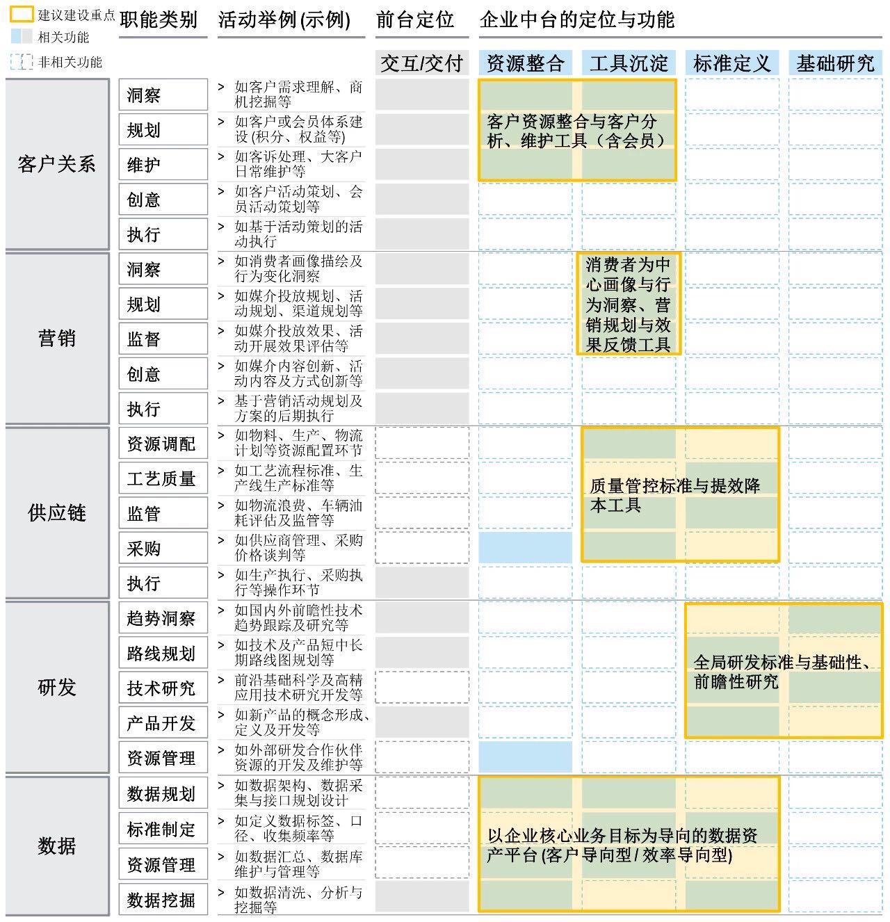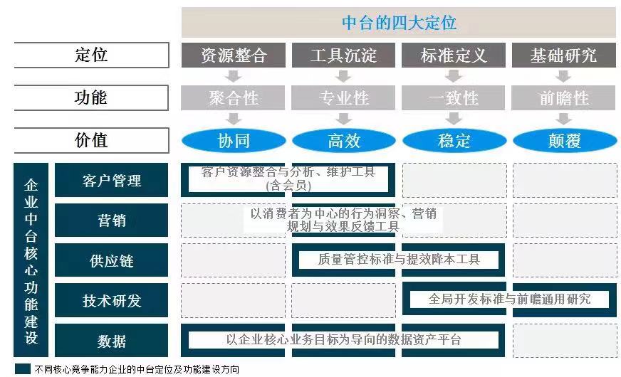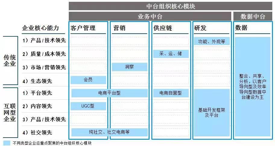 2. 不同核心竞争能力的企业,在中台建设中应切准功能建设重点