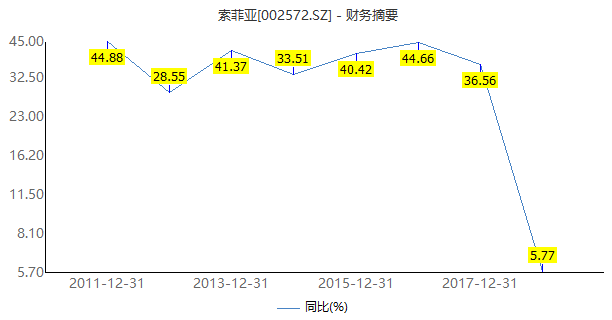 同比来看,营业收入虽有所增长,但索菲亚2018年第四季度归属于上市公司股东的净利润也出现单季度同比负增长。这是索菲亚上市以来第二次出现单季负增长,上次发生在2012年一季度。