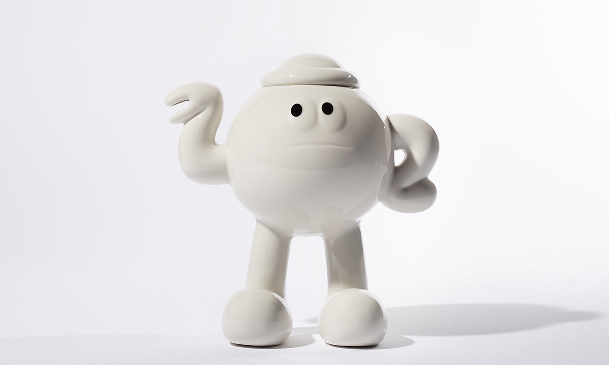 这套茶具包含两个茶杯及一个茶壶,由 James Jarvis 此前为时尚品牌 Silas 设计的玩具角色 Martin 衍生而出。圆滚滚的壶体、叉腰姿势构成的手柄以及如同帽子一样的壶盖让茶壶造型化成了可爱的人偶,一双视线飘向别处的双眼更是让整体形象生动自如。
