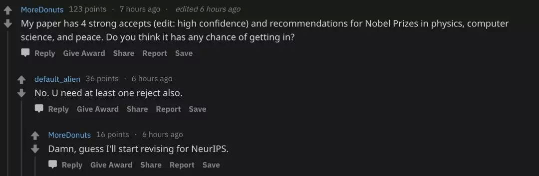 我的论文有4个强烈接受(strong accept),评论者自称是“高度自信”,并且被推荐诺贝尔物理学奖、计算机科学奖和和平奖。你认为它有机会进入吗?