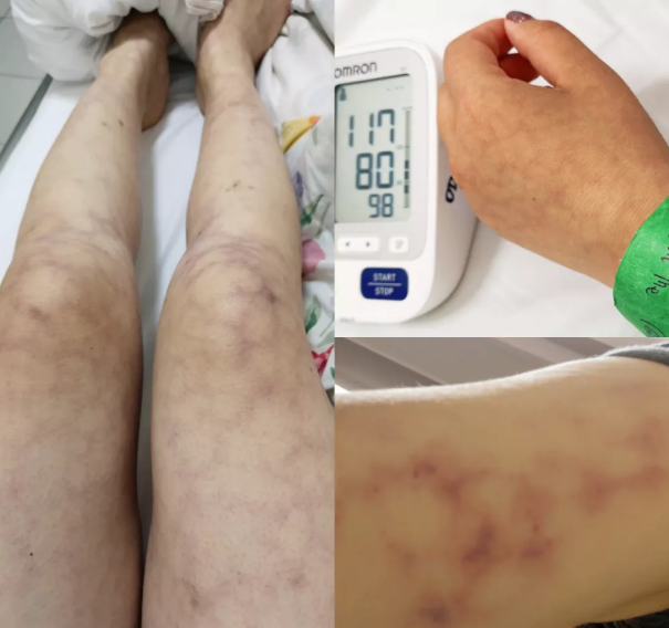7月8日那天早上我花了大概1个多小时才离开床,脑袋根本直不起来,气喘冒虚汗,手臂上布满网状青斑。我喜欢独行。即使结伴,也是根据兴趣和自己的节奏“择时”结伴,也不会拼公寓。这时候出现了两个老天派来的天使情侣,指引我走进了医院,就这样“自投罗网”!(我上一次去医院已是两年前了)