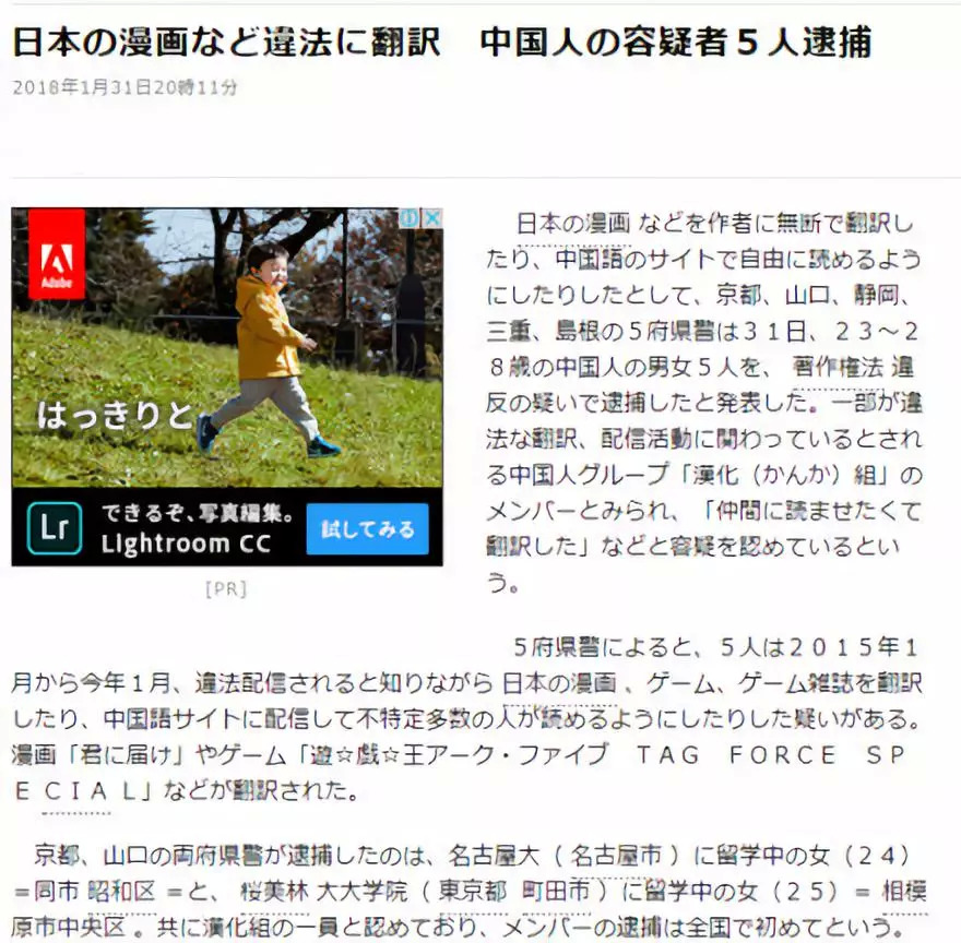 2016年9月,两名为字幕组提供片源的中国籍男子,因涉嫌违反著作权法被日本警方逮捕。2018年1月,又有5名中国字幕组成员被日本警方逮捕。