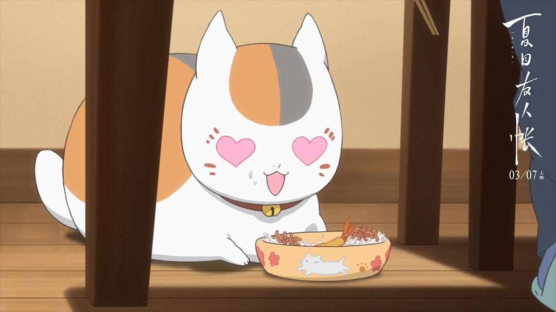 除了夏目贵志这样的“暖男”,治愈系动漫也常常设置“萌”的人物形象,外形和举止都十分可爱,捕获观众的心。在《夏目友人帐》中,妖怪“斑”的化身为“猫咪老师”,以可爱、贪吃的招财猫形象出现,只要一出场,就会被高呼“好萌”,让人感觉轻松可爱。就连出场的妖怪们也不是《百鬼夜行》《百物语》中神秘莫测、阴森恐怖的妖怪,而更加贴近人形,并被赋予人性,成为了人世的倒影,有些妖怪甚至毛茸茸、傻乎乎的,十分可爱。