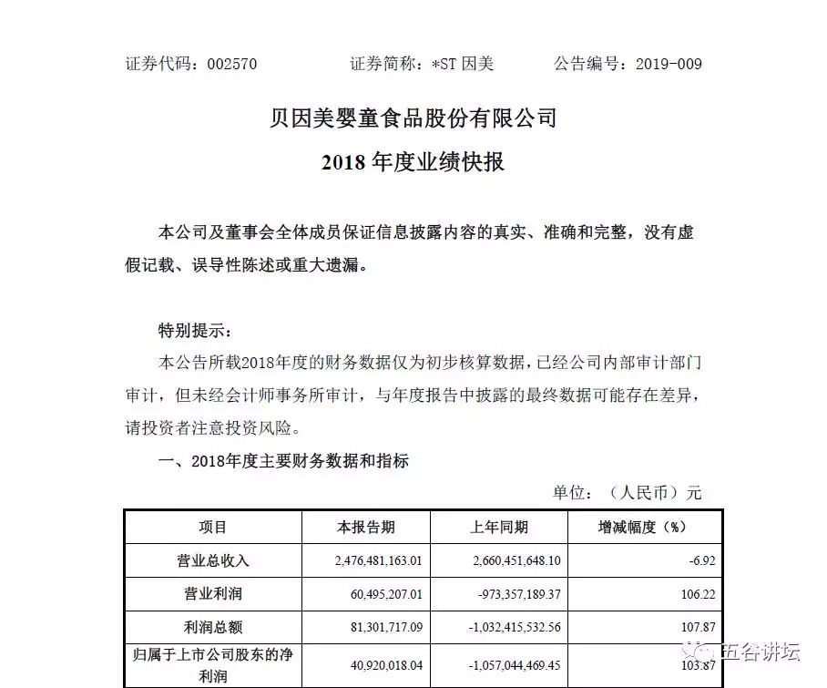 根据深交所的规定,如果因美2018年度经审计的净利润为正,贝因美将在2018年年报公告后向深交所申请撤销退市风险警示,股票简称也将从“*ST因美”更换回“贝因美”!