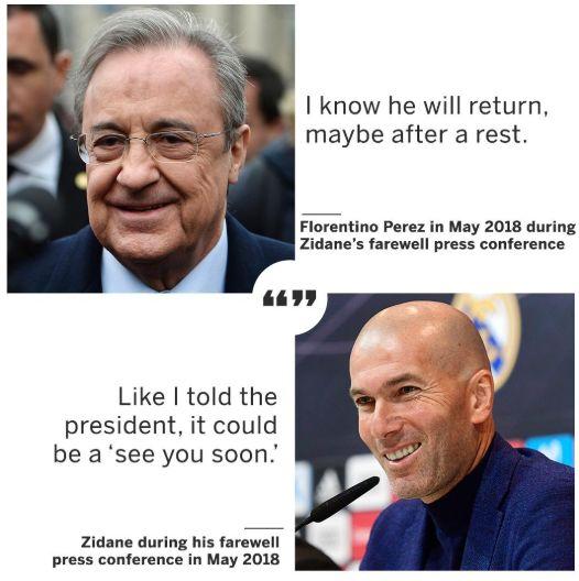 在当他再次归来时,齐达内认为那次离开不是个错误:“当我选择离开,是对每个人最好的决定。球队需要改变,阵容需要改变,我告诉你当时我的想法。9个月后俱乐部给我打了电话……”