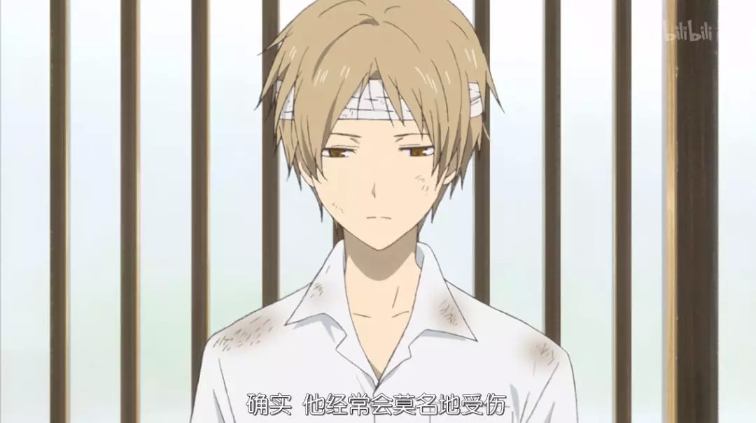 初次出场,夏目是一个远离人群的人,对妖怪也没有好感。