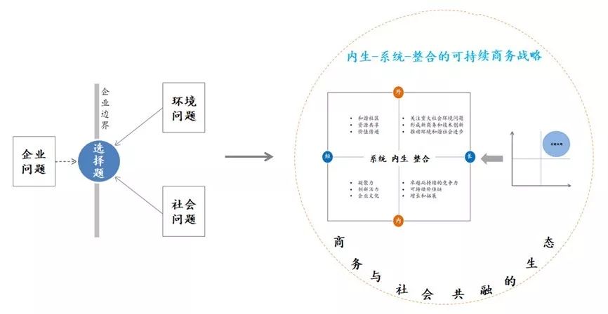在这个生态里,创造共享价值不是公司为了品牌、形象的附加活动(Add-on),它将转化为企业本身的核心活动(Build-in)。它从企业的生存与发展的“内生”需求,一方面激励企业主动地应对社会和环境挑战;另一方面也通过链接商业成功与社会进步,在创造经济价值的同时,创造出巨大的社会效益。