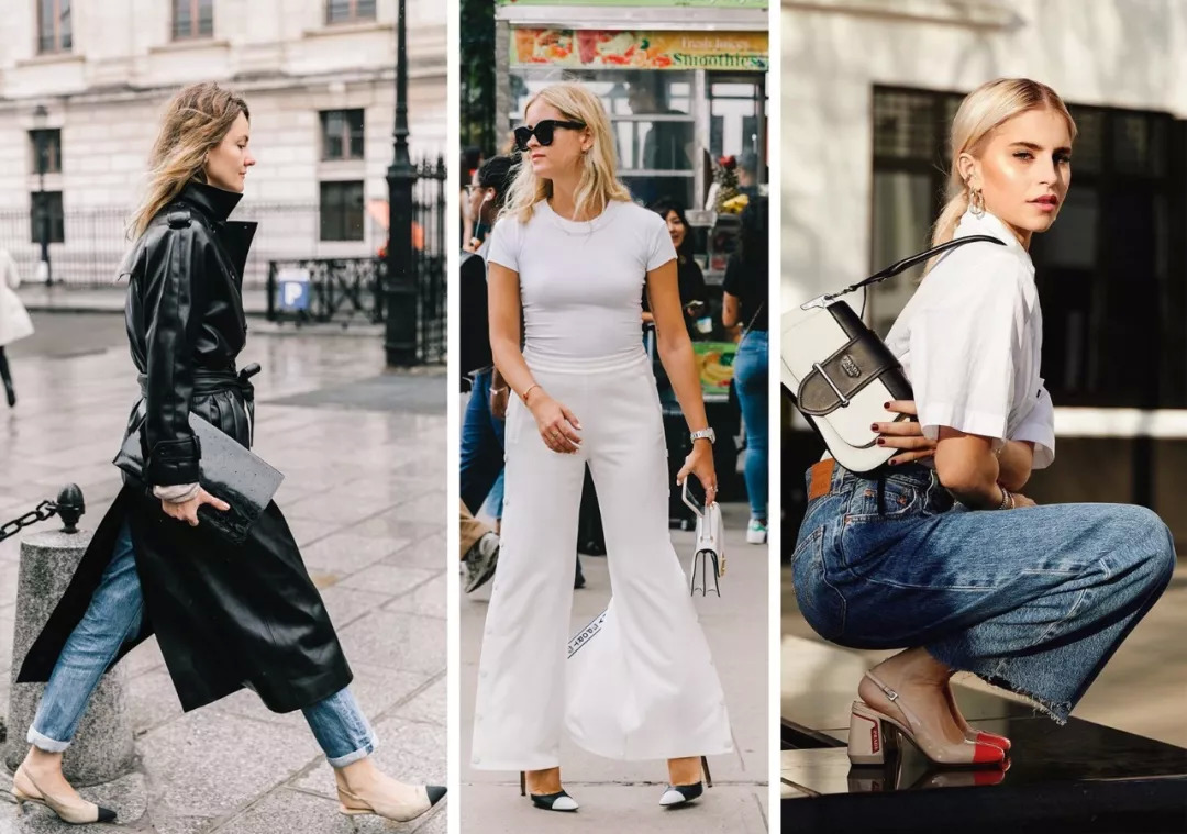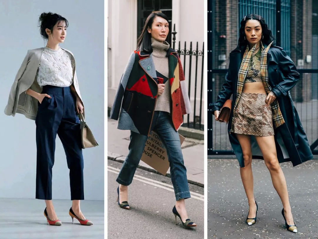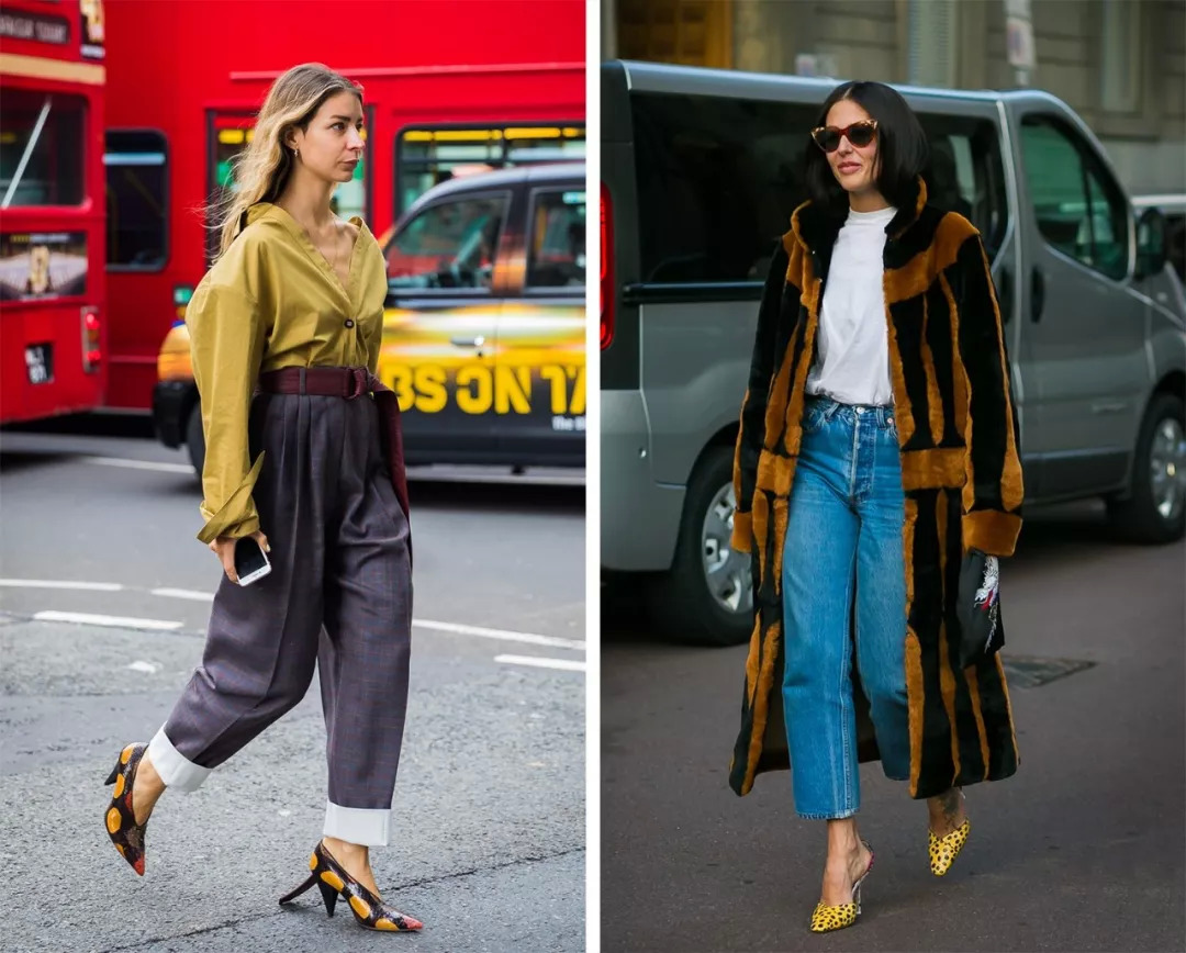 而如果鞋子选的是像黑+白或黑+裸之类的简单配色,还可以用来搭配具有设计感的单品,会比纯色鞋看起来要厉害的多。
