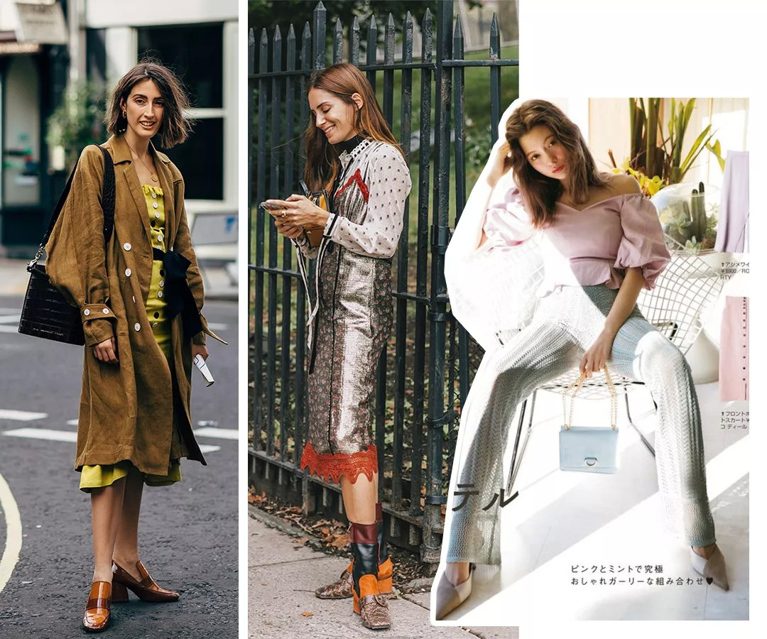比如低调的鞋跟撞色,彩色鞋跟最近几季都蛮受欢迎的,很值得穿!还有更犀利的金属跟,看起来更酷。