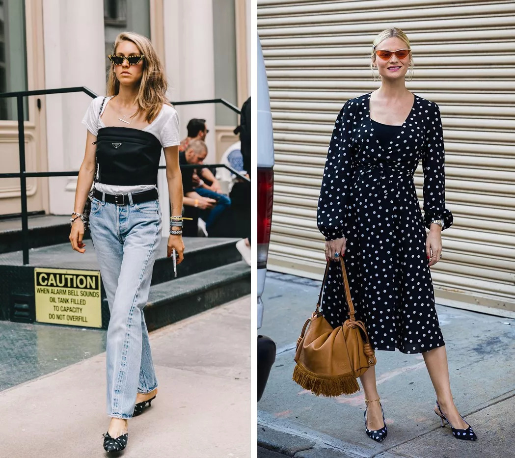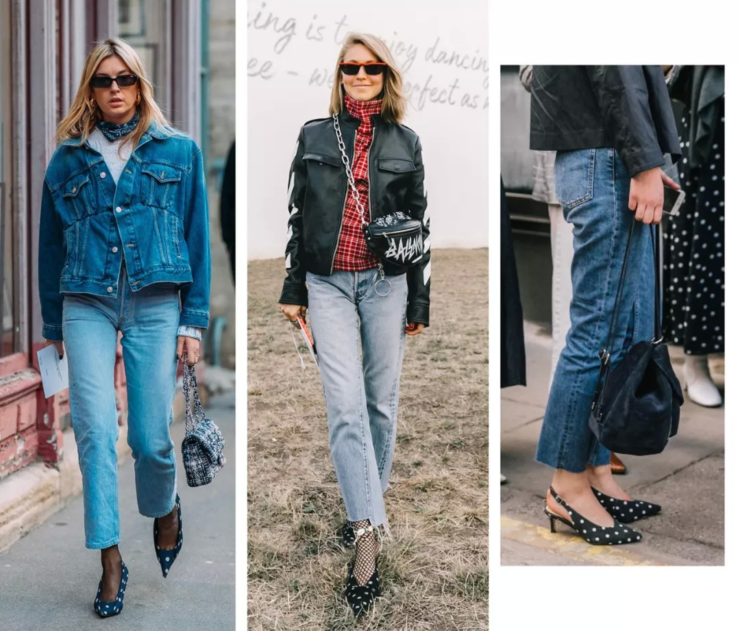时装精们是真的很爱打造这种反差感没错了。少女味的波点鞋还可以用来搭配粗狂的牛仔裤,也是超级好看!