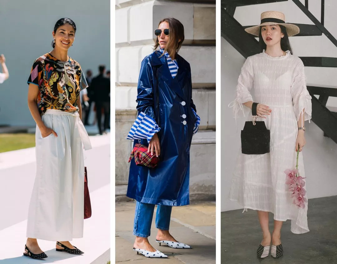 最经典的黑白配色自然不用多说。黑底白波点比较复古,白底黑波点的更清爽。而旅行博主Elxi这双把波点和撞色拼接结合到一起的穆勒鞋就更别致啦!
